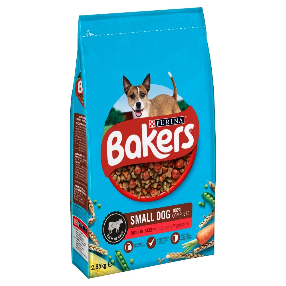 Bakers Complete Small Dog with Beef. Baker recipe has been made with a variety of tender* meaty chunks & wholegrains for quality, tasty goodness. Each meal contains the every day nutrients your dog needs to get on with all the playful & cheeky things that happy & healthy BAKERS dogs do!