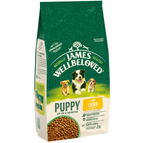 James Wellbeloved Lamb & Rice Puppy Food has been designed to provide a naturally hypoallergenic diet that is also nutritionally balanced to support growth. This food is to be fed from 6 to 8 weeks onwards as the high protein content ensures a rapid, healthy growth phase.